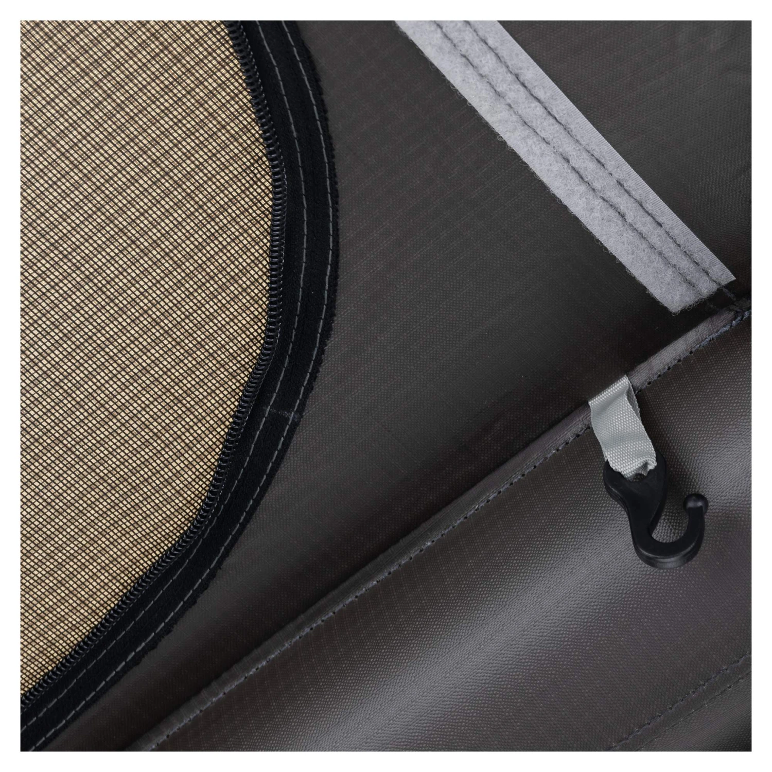 Das praktische und klein verpackbare Dachzelt hat aber noch einen weiteren Vorteil, der es vor allem für Nachteulen und Langschläfer:innen zum idealen Zelt macht. Es lässt sich von innen hervorragend abdunkeln! Und wenn wir dunkel sagen, dann meinen wir auch dunkel! Selbst die Messehalle in Düsseldorf samt greller Deckenbeleuchtung konnte „ausgeblendet“ werden! Das kräftige Material schluckt darüber hinaus einiges an Geräuschen, auch wenn du hier nicht zu viel erwarten solltest, denn es ist logischerweise noch immer ein Zelt!