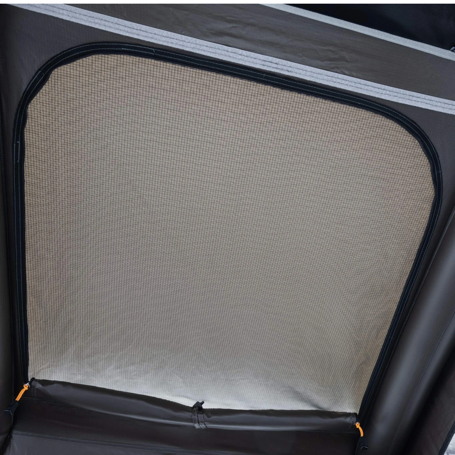 Auffallend sind auch die großflächigen Mesh-Fenster des Dachzeltes. Wenn es also mal richtig warm wird, kannst du es bestens belüften. Je nach Standort kannst du durch sie aber auch die hoffentlich beeindruckende Kulisse auf dich wirken lassen. Das beinahe 360°-Panorama kann einem da morgens schon mal den Atem verschlagen und der Kaffee schmeckt mit beeindruckender Berg- oder Seekulisse doch auch einfach noch mal eine ganze Spur besser!