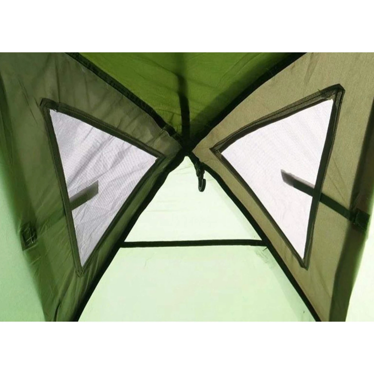- Außenzelt und Innenzelt werden durch außenliegendes Gestänge gleichzeitig aufgebaut