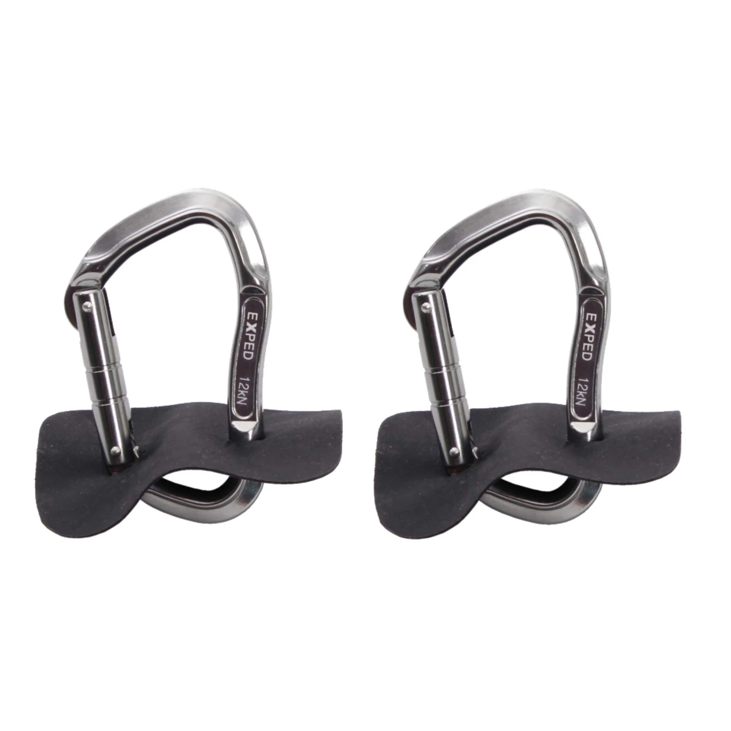 Sehr praktische Aufhängekarabiner mit Regenabtropfschild. Diese 2 Aufhängekarabiner erlauben blitzschnelles Aufhängen der Hängematte, ideal in Kombination mit dem Hammock Suspension Kit von Exped. Die Abtropf-Schilde verhindern das Durchnässen der Hängematte bei Regen.