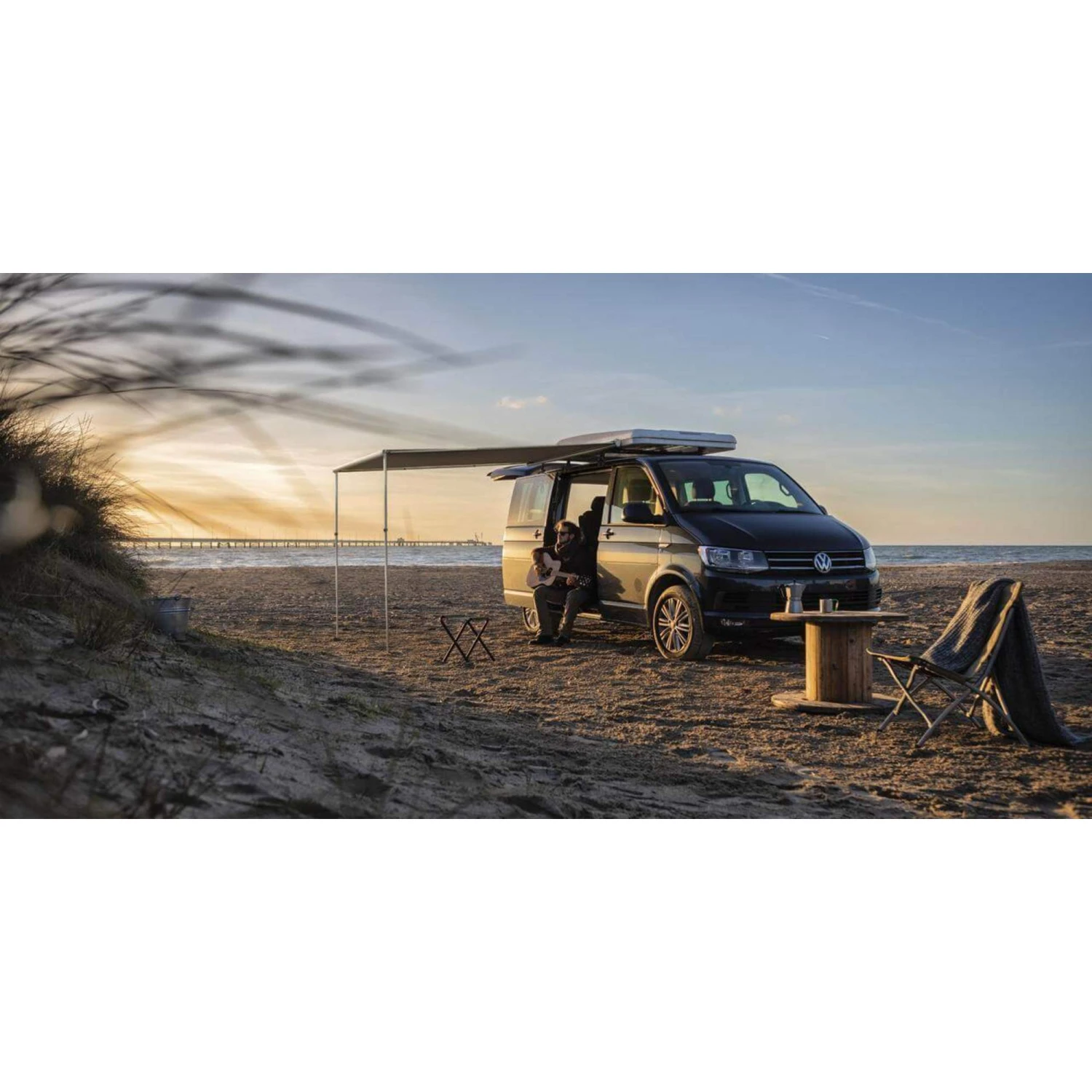Das Sonnensegel wird direkt am Dachträger montiert und ist sekundenschnell ausgezogen und aufgebaut. Es schafft ein schattiges Plätzchen am Auto zum Entspannen und Erholen.