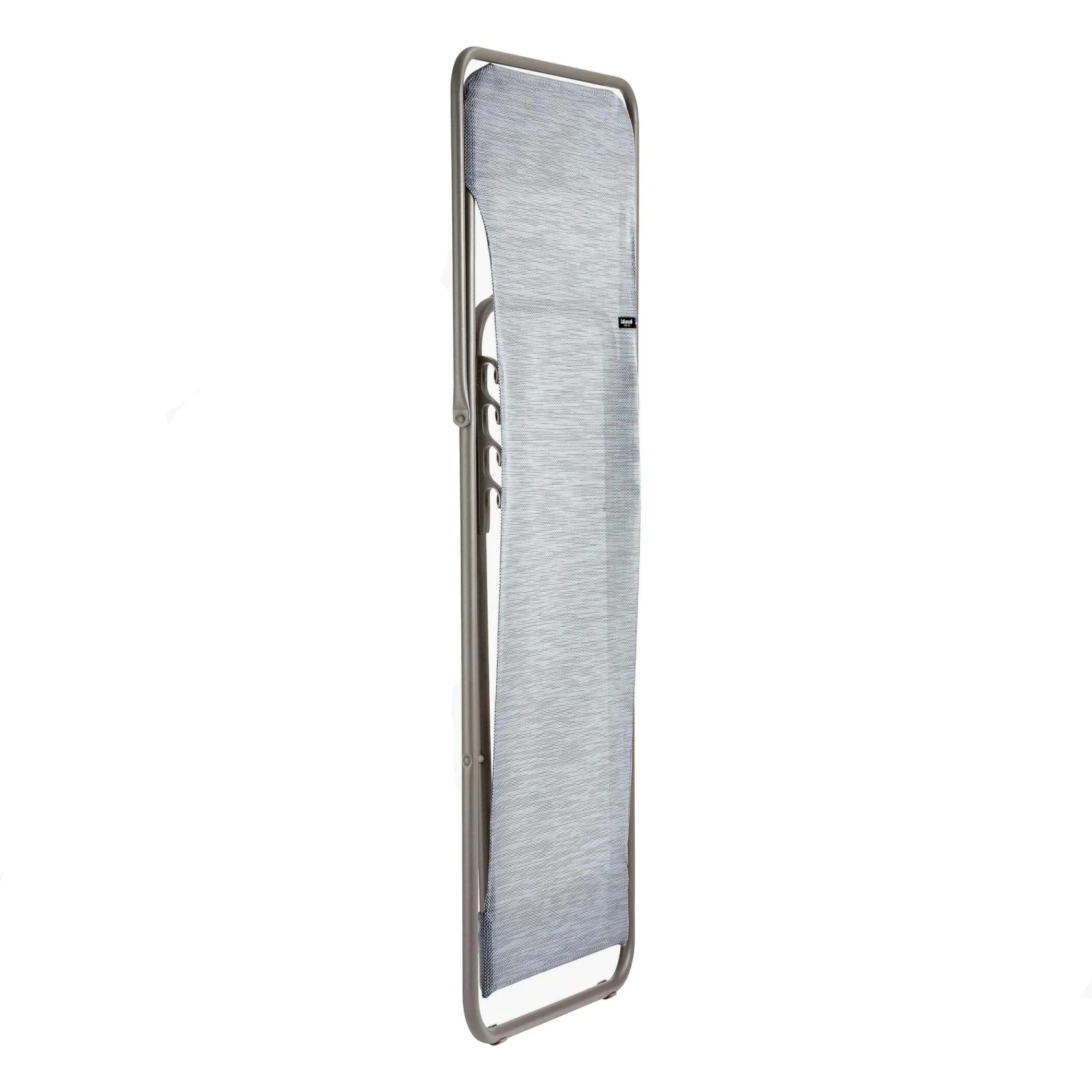 Der Liegestuhl ist sehr robust, das merkst du schon beim Hinsetzen. Das 20 mm dicke Stahlrohr ist lackiert und besitzt eine beschichtete Oberfläche. Der Batyline-Bezug ist wasserfest, leicht zu trocknen und zu reinigen. Insgesamt hat der Transatube 2 eine hohe UV-Beständigkeit. Der Stuhl lässt sich bemerkenswert flach zusammenklappen: nur noch 5 cm misst er dann. So kannst du ihn kompakt unterbringen und in allerlei Nischen lagern.