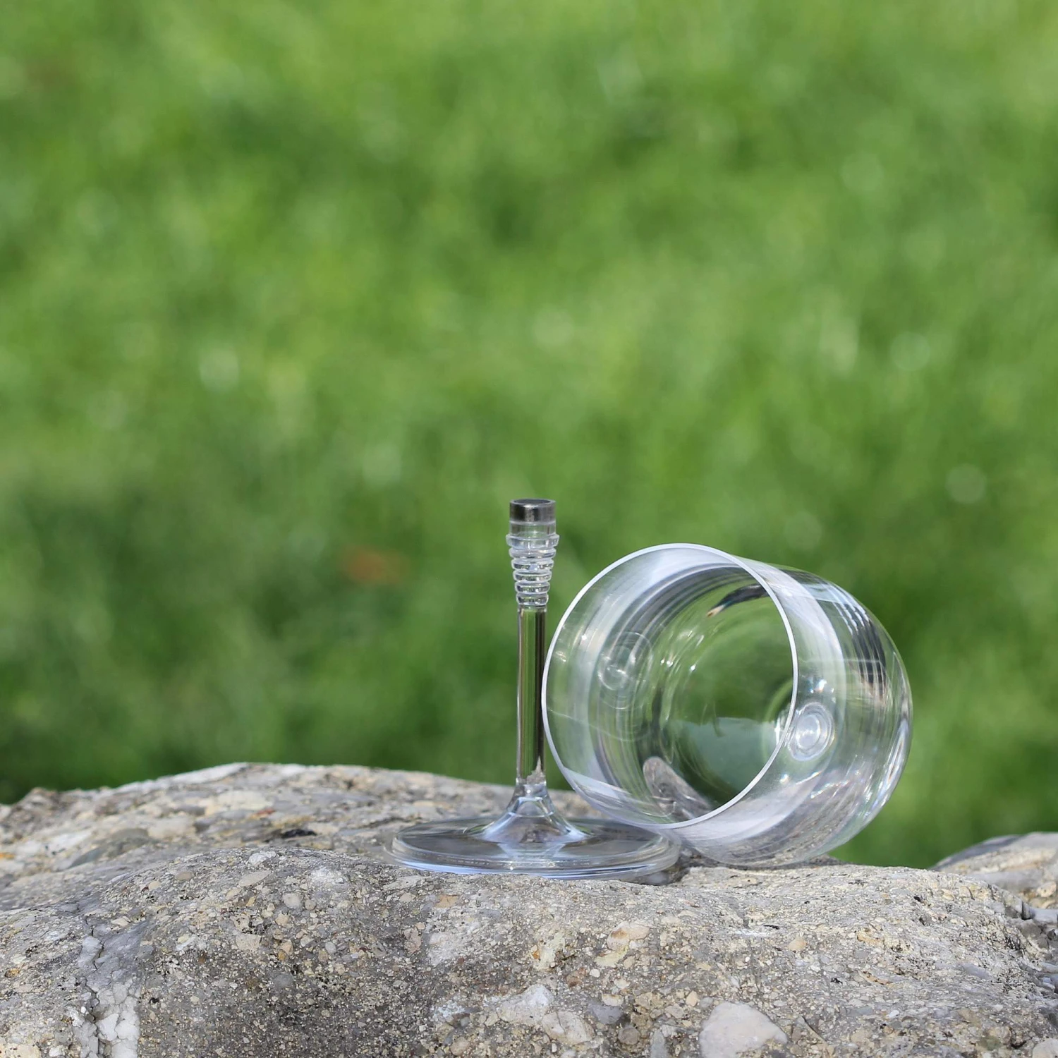 Sti(e)llos ist dieses Rotweinglas nur im Gepäck. Denn der Kelch kann umgedreht auf den Fuß gesteckt werden und lässt sich dadurch platzsparend verpacken.
