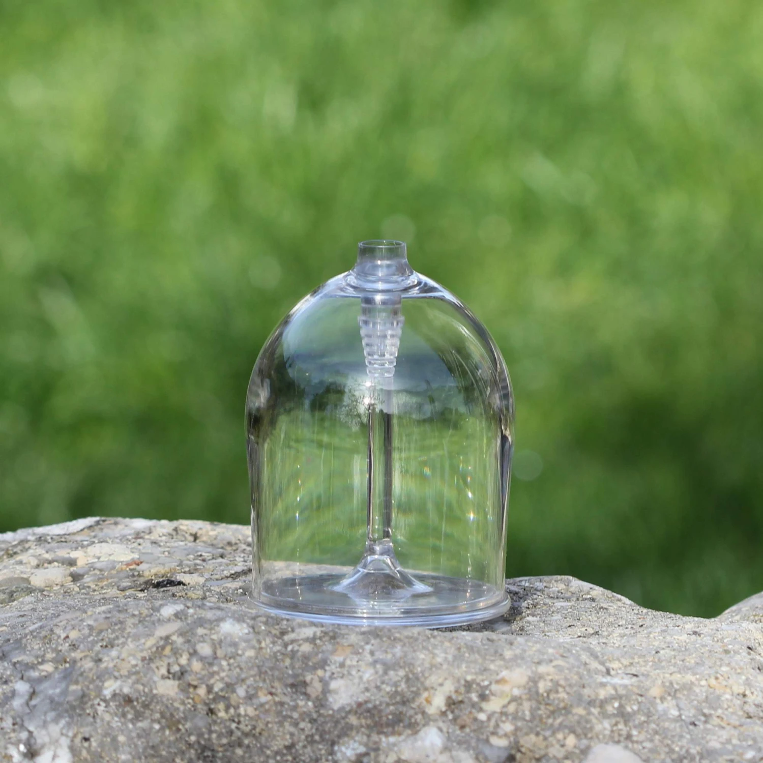 Hergestellt ist das Rotweinglas aus klarem Polycarbonat mit einer Wandstärke von 1,2 mm. Der besondere Clou ist der Magnethalter im Fuß. Dieser hält beide Teile sowohl im zusammengesteckten Zustand als auch beim Transport in Position.