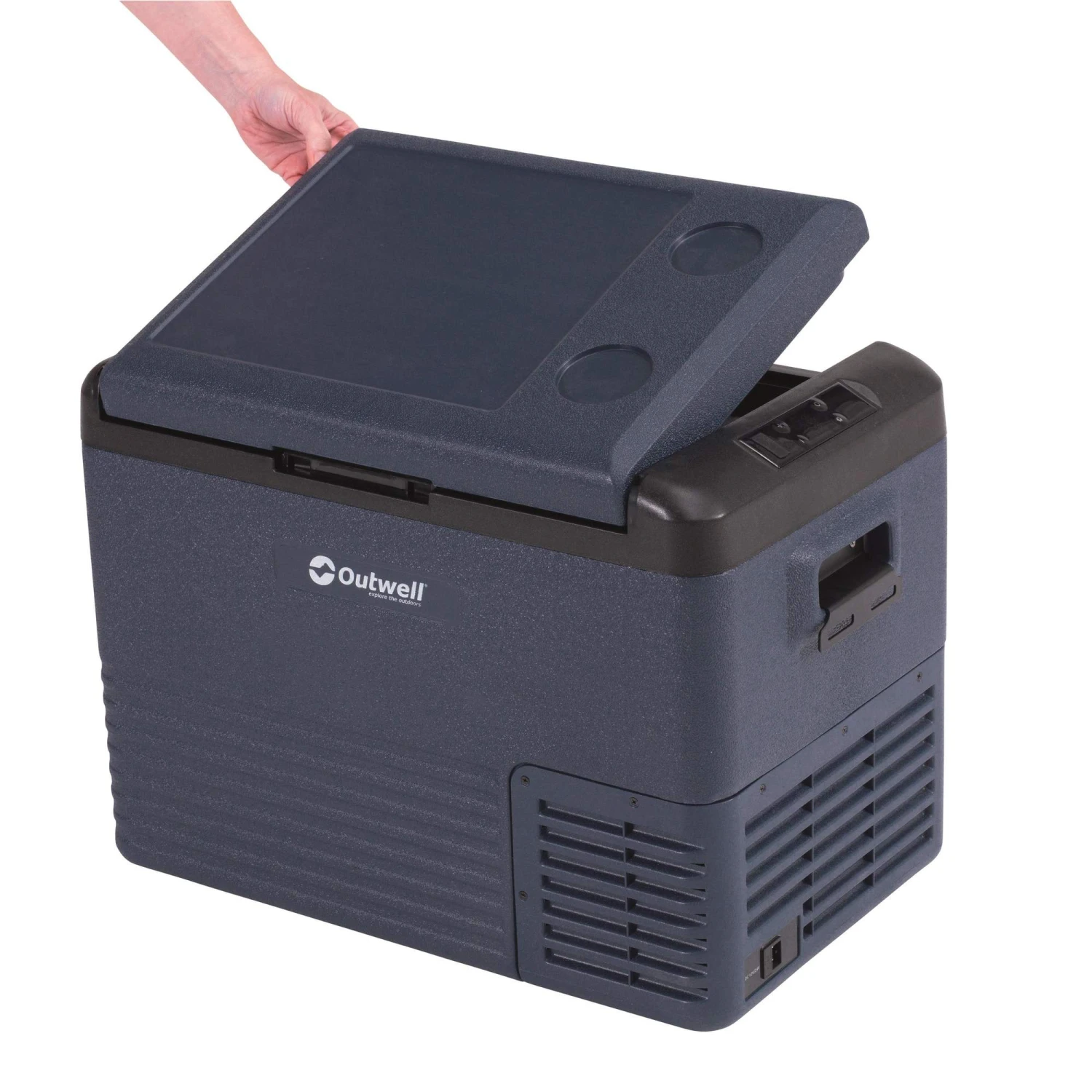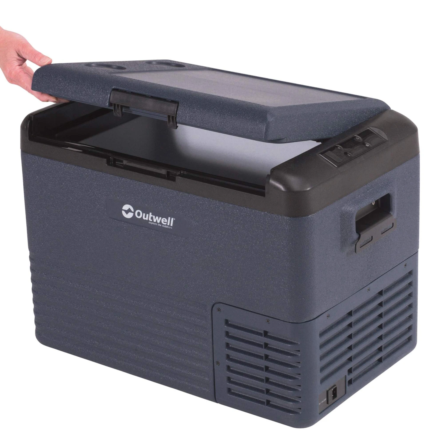 Kompressorkühlbox für 12 V und 240 V Anschlüsse. Die exakte Temperaturkontrolle bis -20 °C erlaubt die dauerhafte Lagerung von Getränken, Obst, Gemüse, Eis und TK-Fleisch.