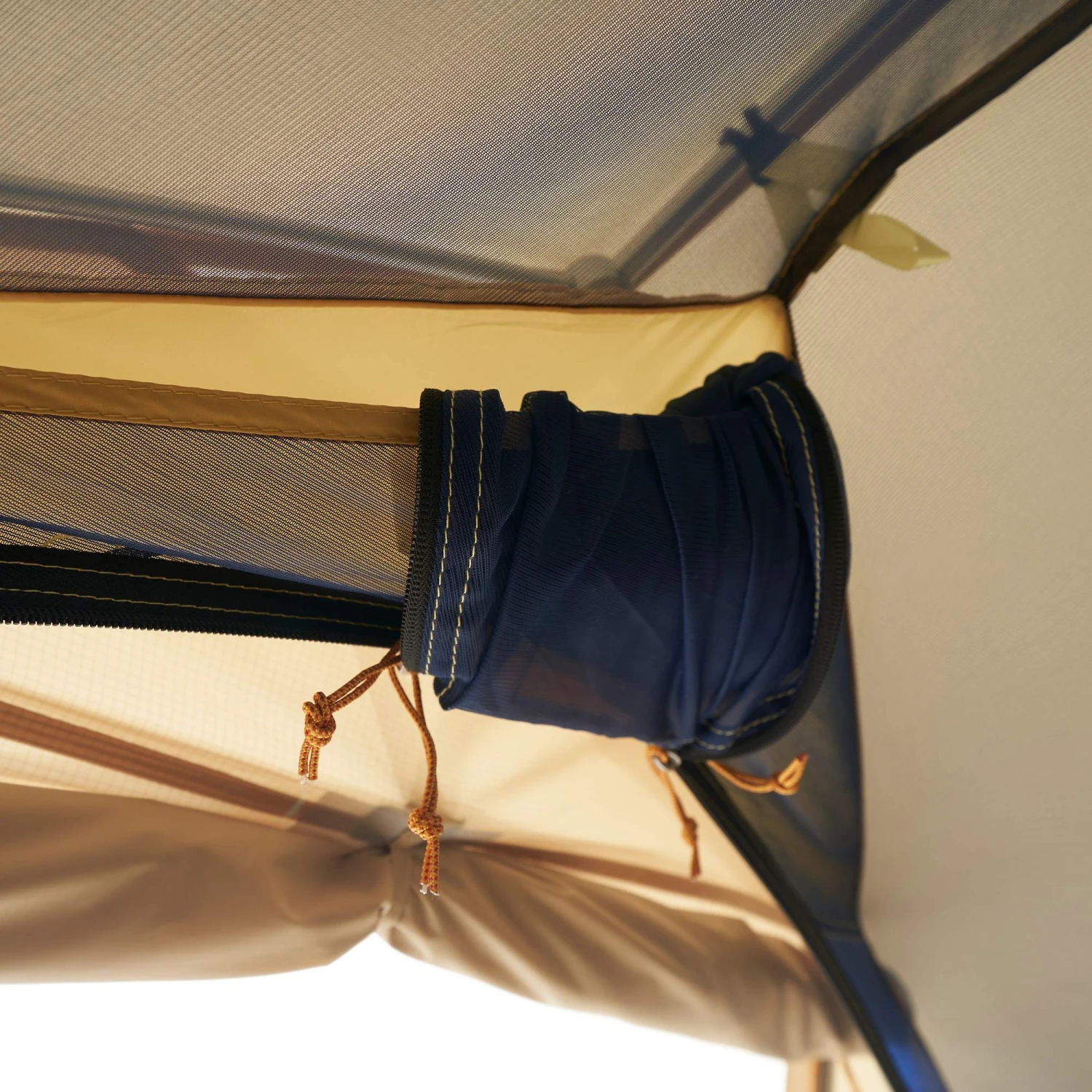 - Die Innenzelttür kann geöffnet in einer Deckentasche verstaut werden