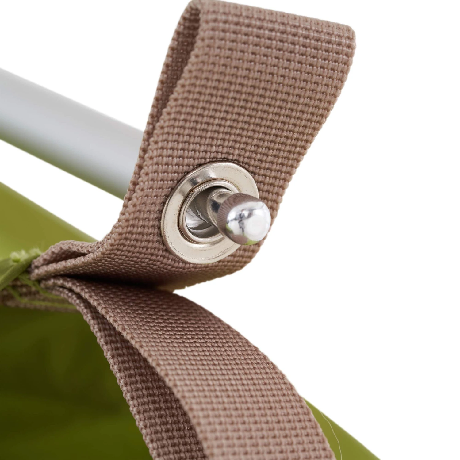 - Die Innenzelttür kann aufgerollt mit einem Knebelverschluss befestigt werden