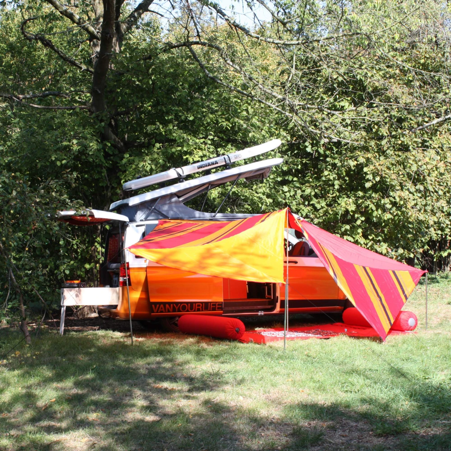 Je nachdem wie du es aufstellst, erhältst du ein wind- oder sonnengeschütztes Plätzchen. Besonders ansehnlich wird es, wenn mehrere Tarps (eigene oder die von Freunden) miteinander verbunden werden. Den gestalterischen und kreativen Aufstellmöglichkeiten sind keine Grenzen gesetzt.